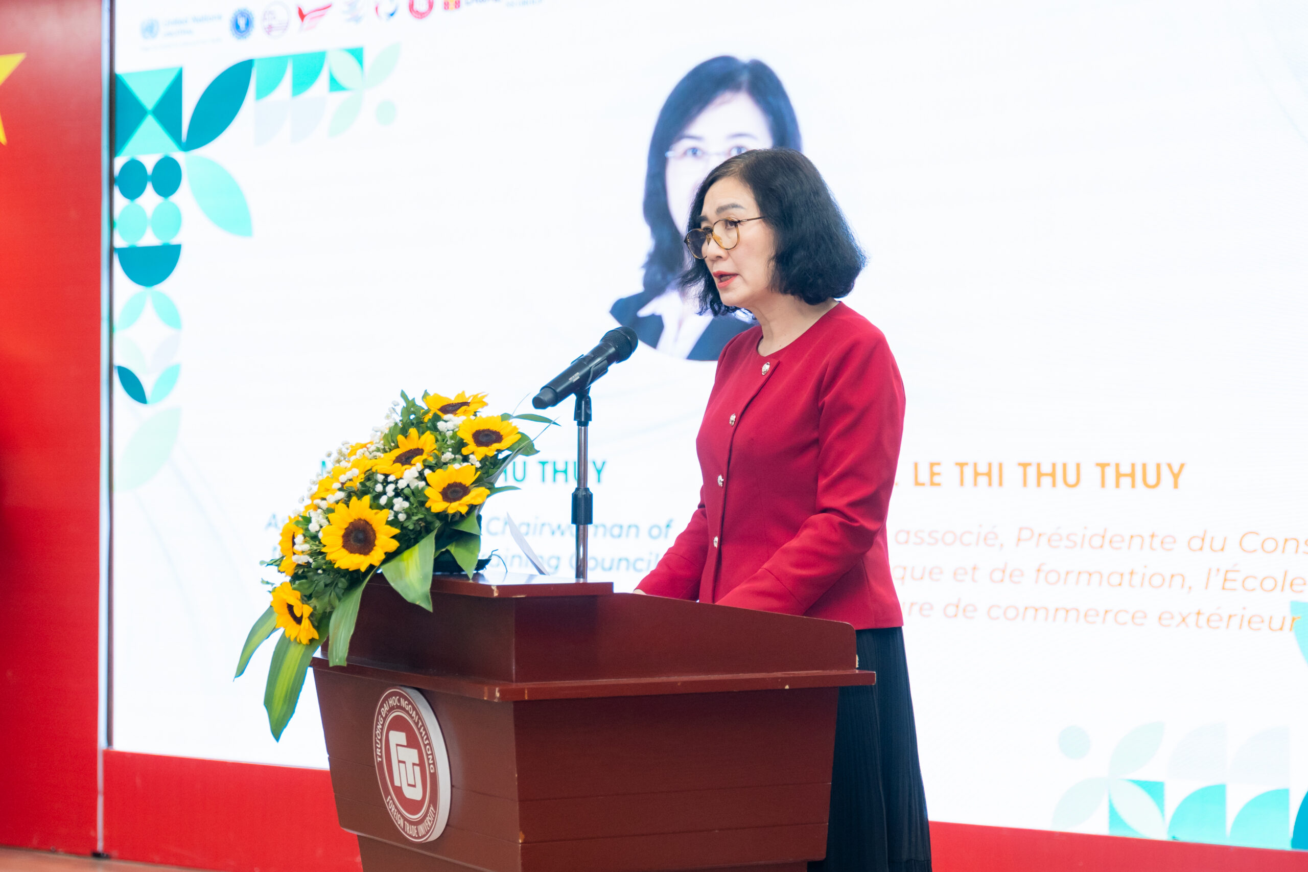 Phát biểu khai mạc tại hội thảo, PGS.TS. Lê Thị Thu Thủy – Chủ tịch Hội đồng Khoa học và Đào tạo, Trường Đại học Ngoại Thương – nhấn mạnh: “Chuyển đổi bền vững trên cơ sở phát triển thị trường carbon là một trong những hướng tiếp cận quan trọng nhằm giải quyết thách thức toàn cầu về biến đổi khí hậu.”